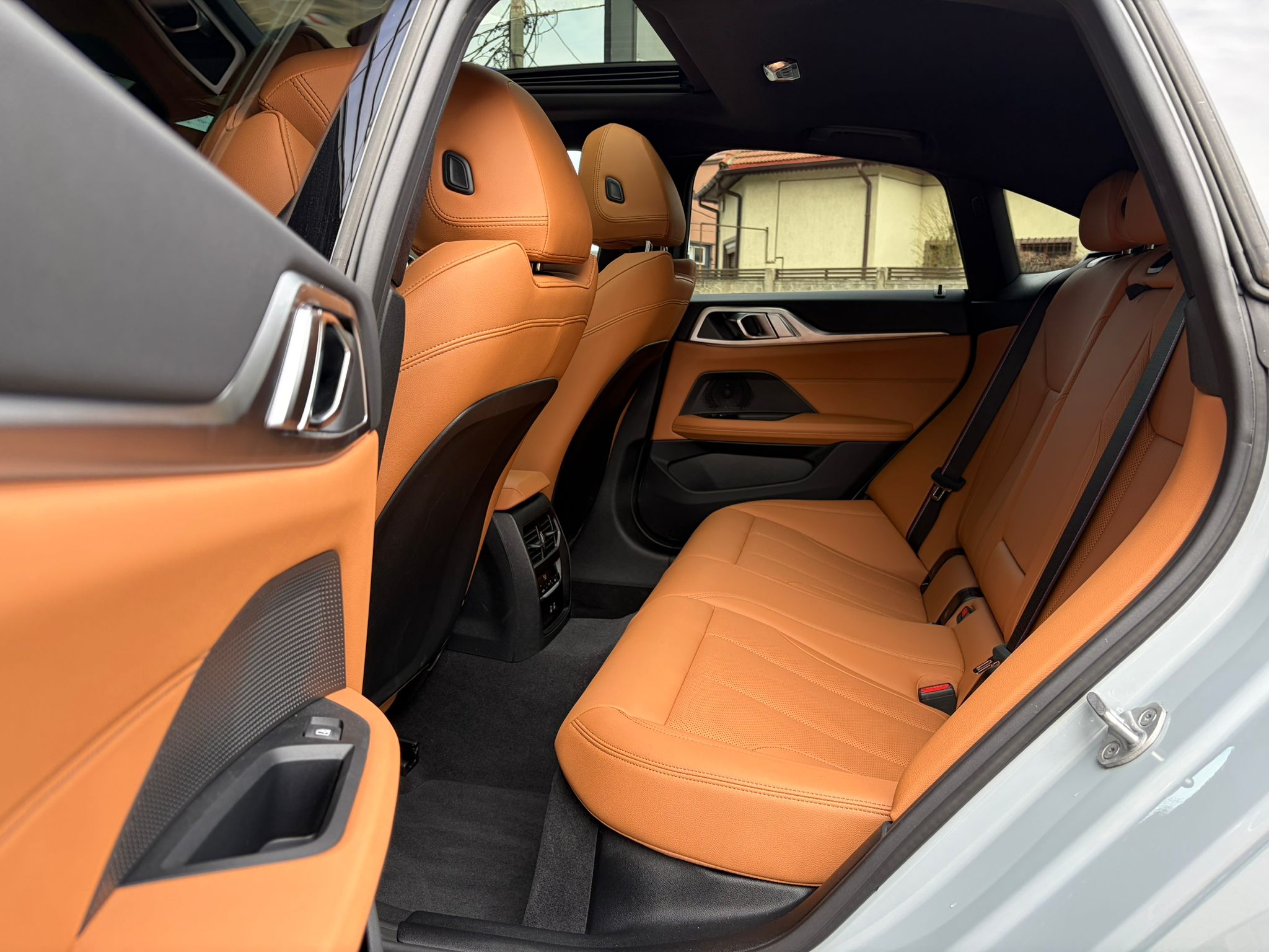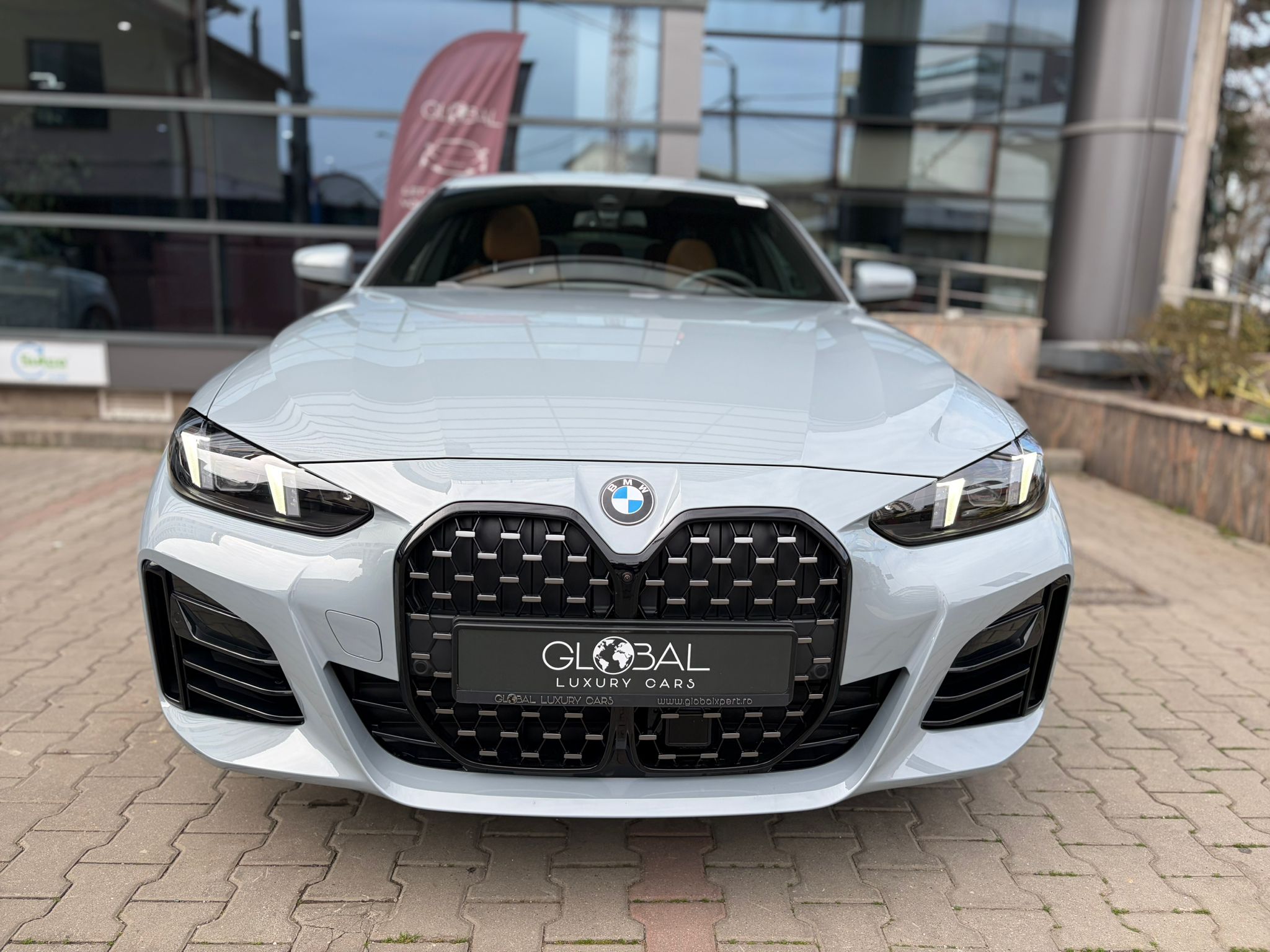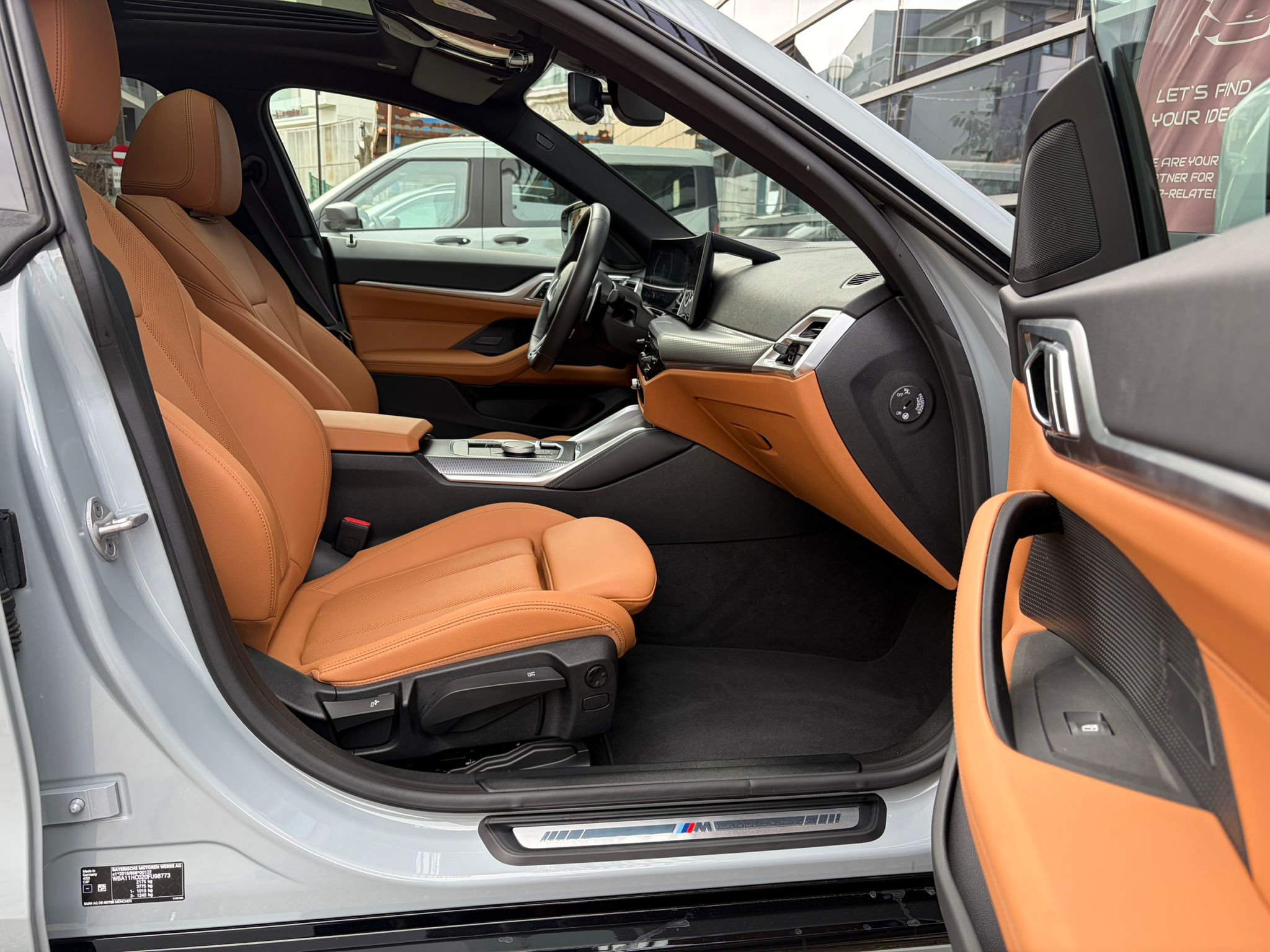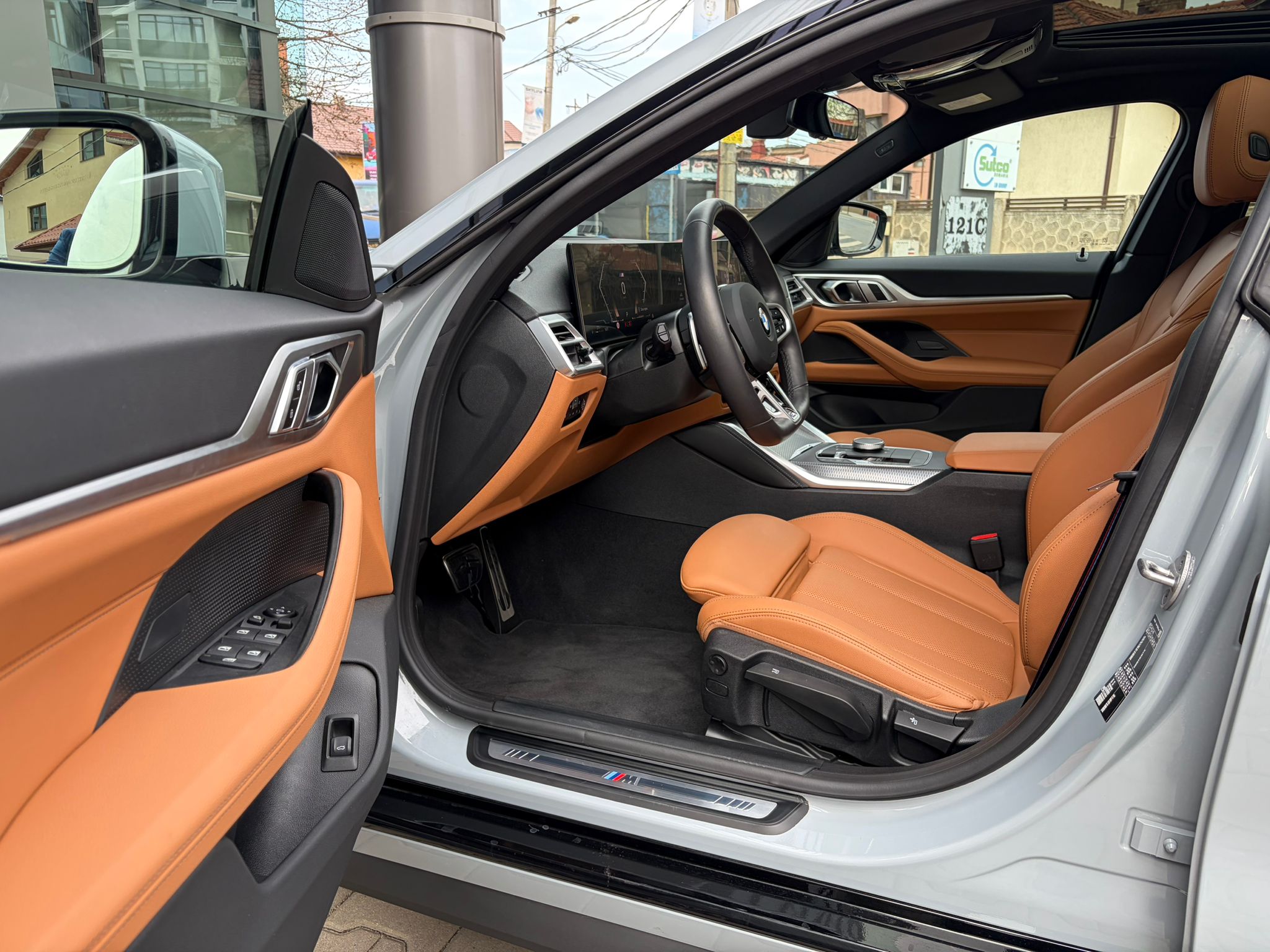 BMW 420i xDrive în echipare M Sport, configurat în nuanța elegantă M Brooklyn Grey, cu interior Cognac / piele maro și o combinație foarte reușită de sportivitate, confort și tehnologie. Modelul beneficiază de suspensie adaptivă M, transmisie automată sport Steptronic, Driving Assistant, Parking Assistant Plus, cameră 360°, BMW Live Cockpit Professional și plafon panoramic din sticlă.