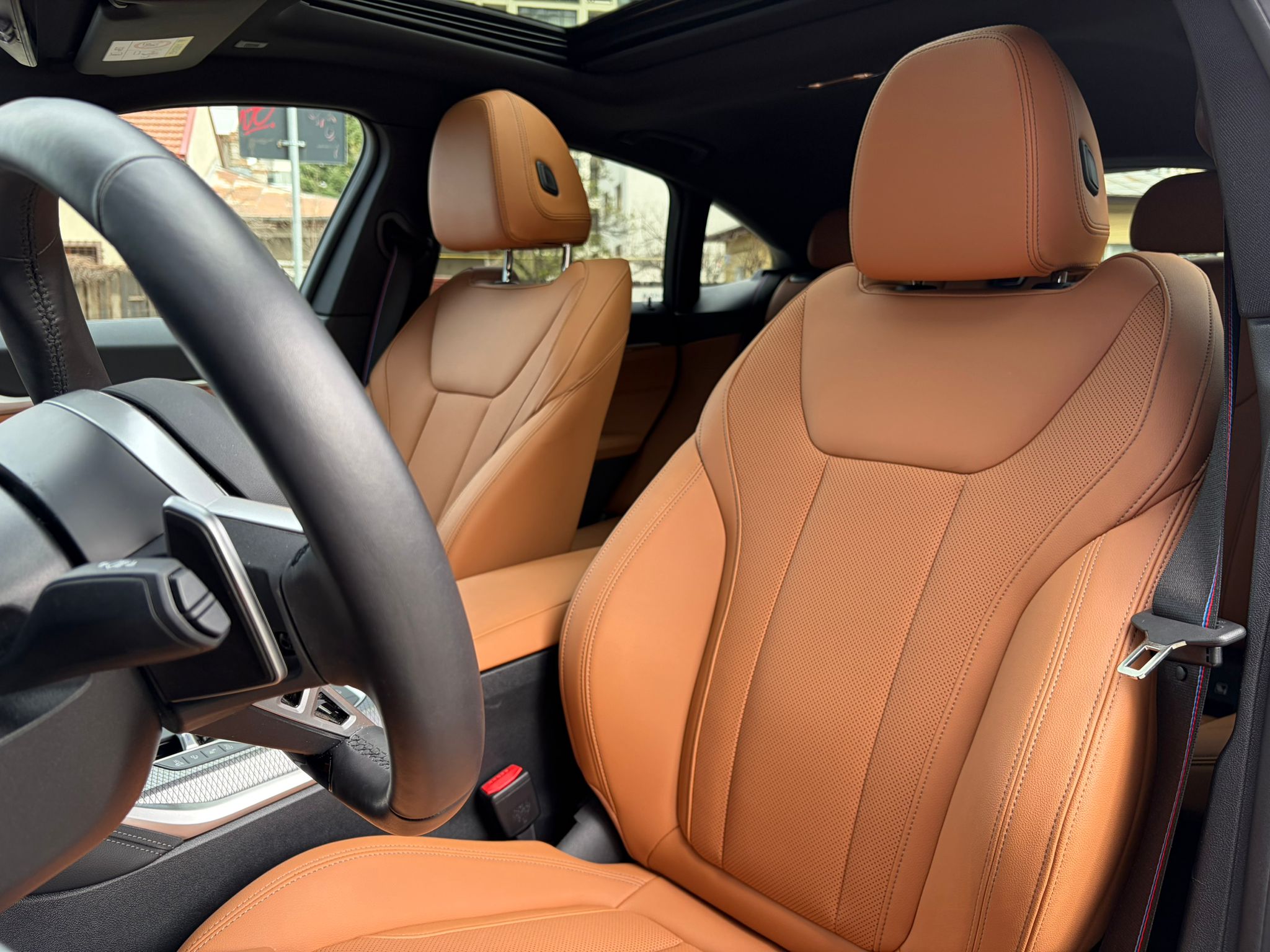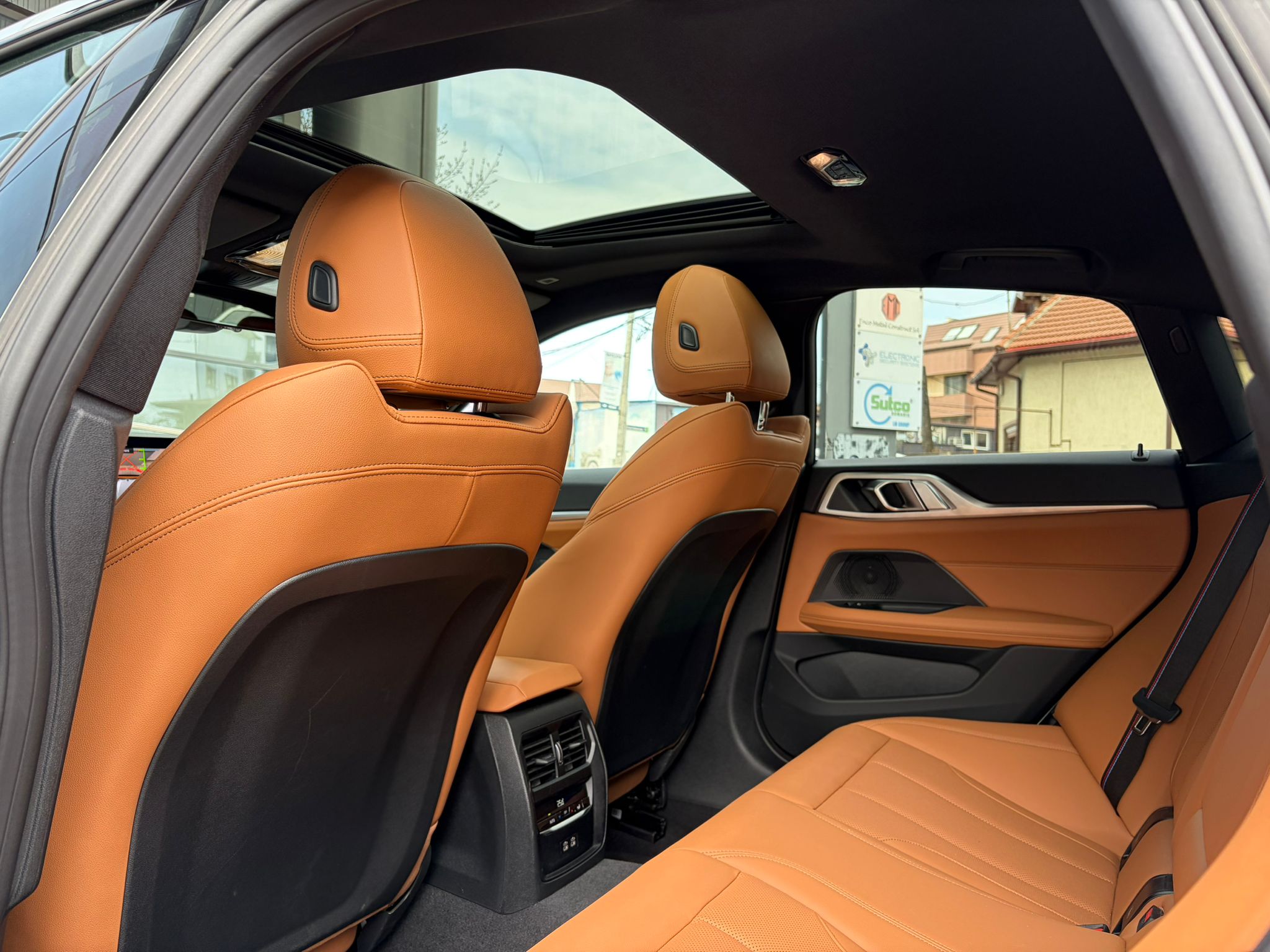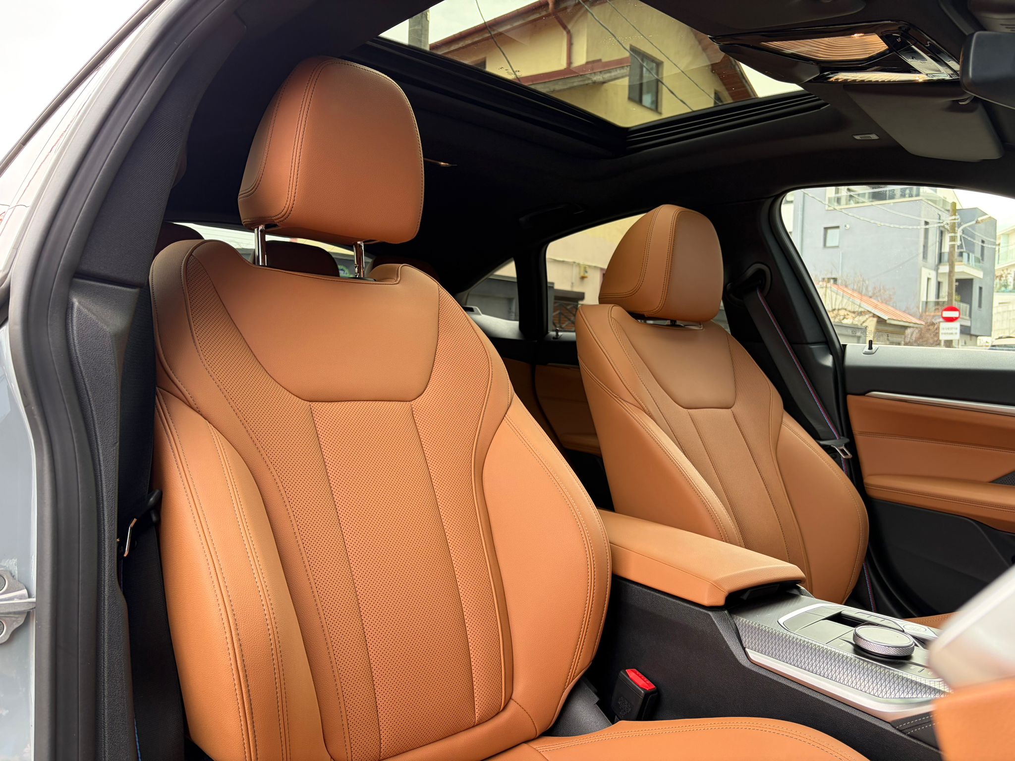 BMW 420i xDrive în echipare M Sport, configurat în nuanța elegantă M Brooklyn Grey, cu interior Cognac / piele maro și o combinație foarte reușită de sportivitate, confort și tehnologie. Modelul beneficiază de suspensie adaptivă M, transmisie automată sport Steptronic, Driving Assistant, Parking Assistant Plus, cameră 360°, BMW Live Cockpit Professional și plafon panoramic din sticlă.