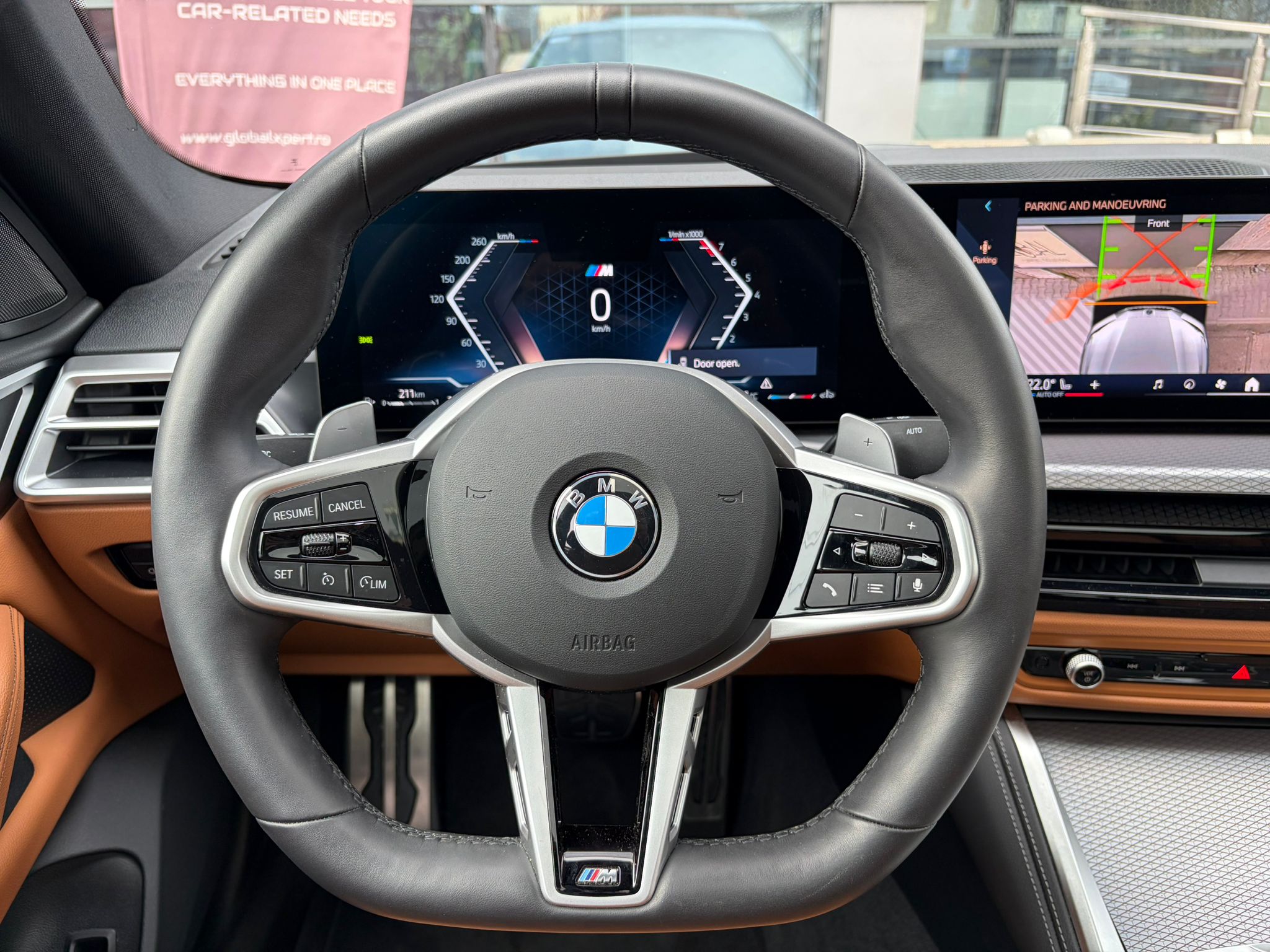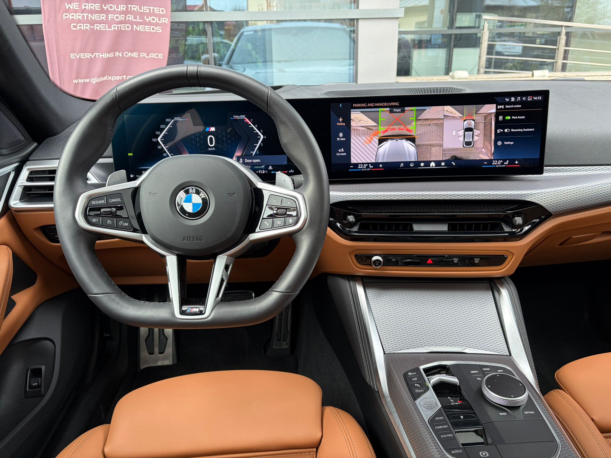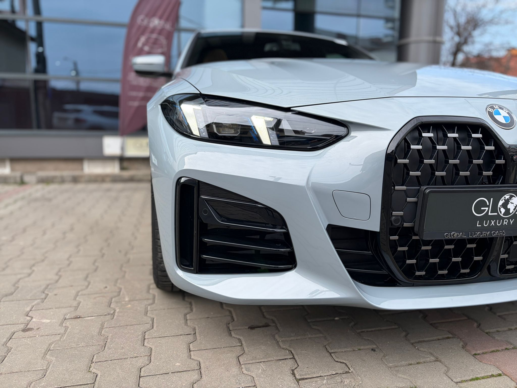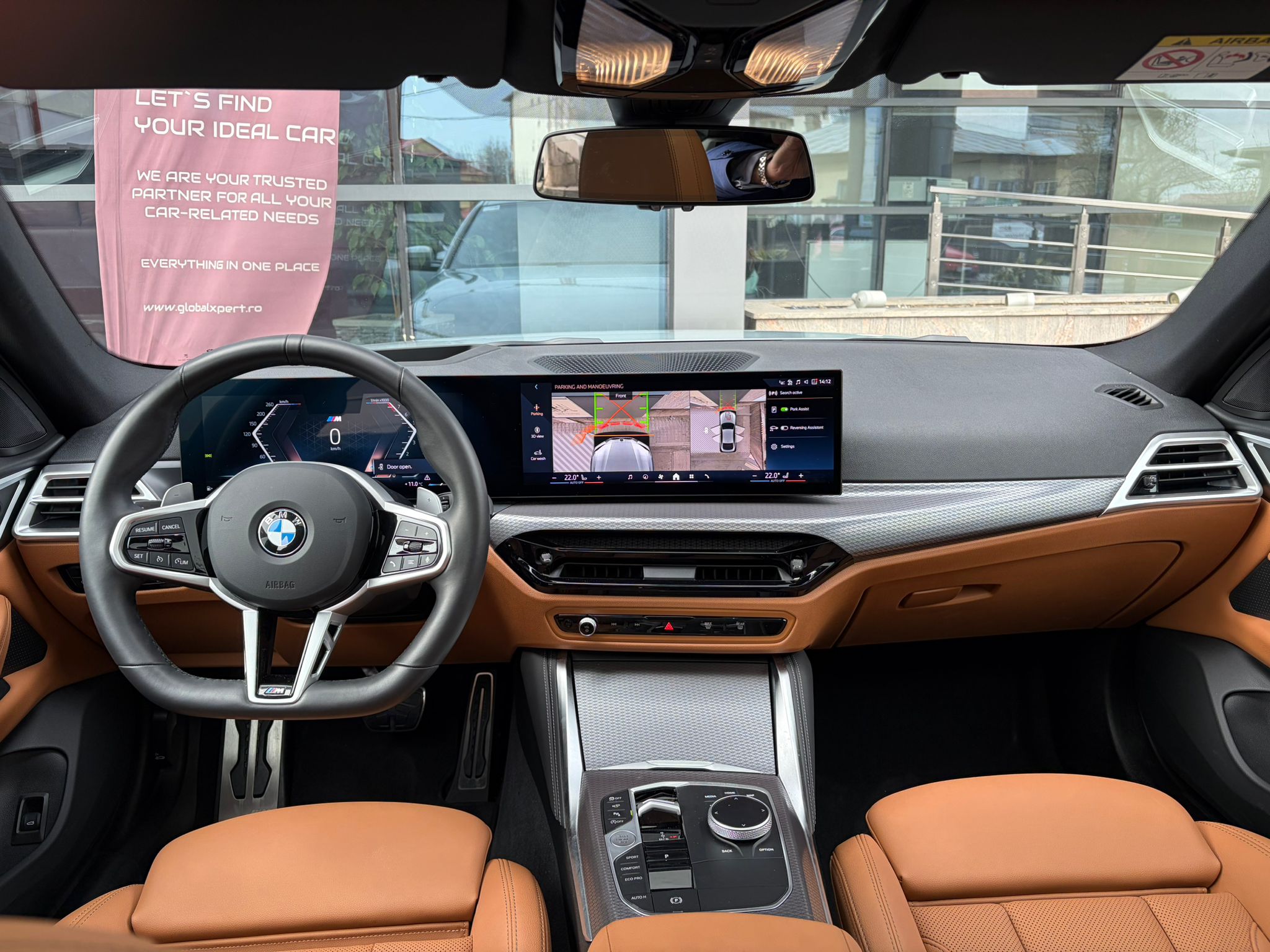 BMW 420i xDrive în echipare M Sport, configurat în nuanța elegantă M Brooklyn Grey, cu interior Cognac / piele maro și o combinație foarte reușită de sportivitate, confort și tehnologie. Modelul beneficiază de suspensie adaptivă M, transmisie automată sport Steptronic, Driving Assistant, Parking Assistant Plus, cameră 360°, BMW Live Cockpit Professional și plafon panoramic din sticlă.